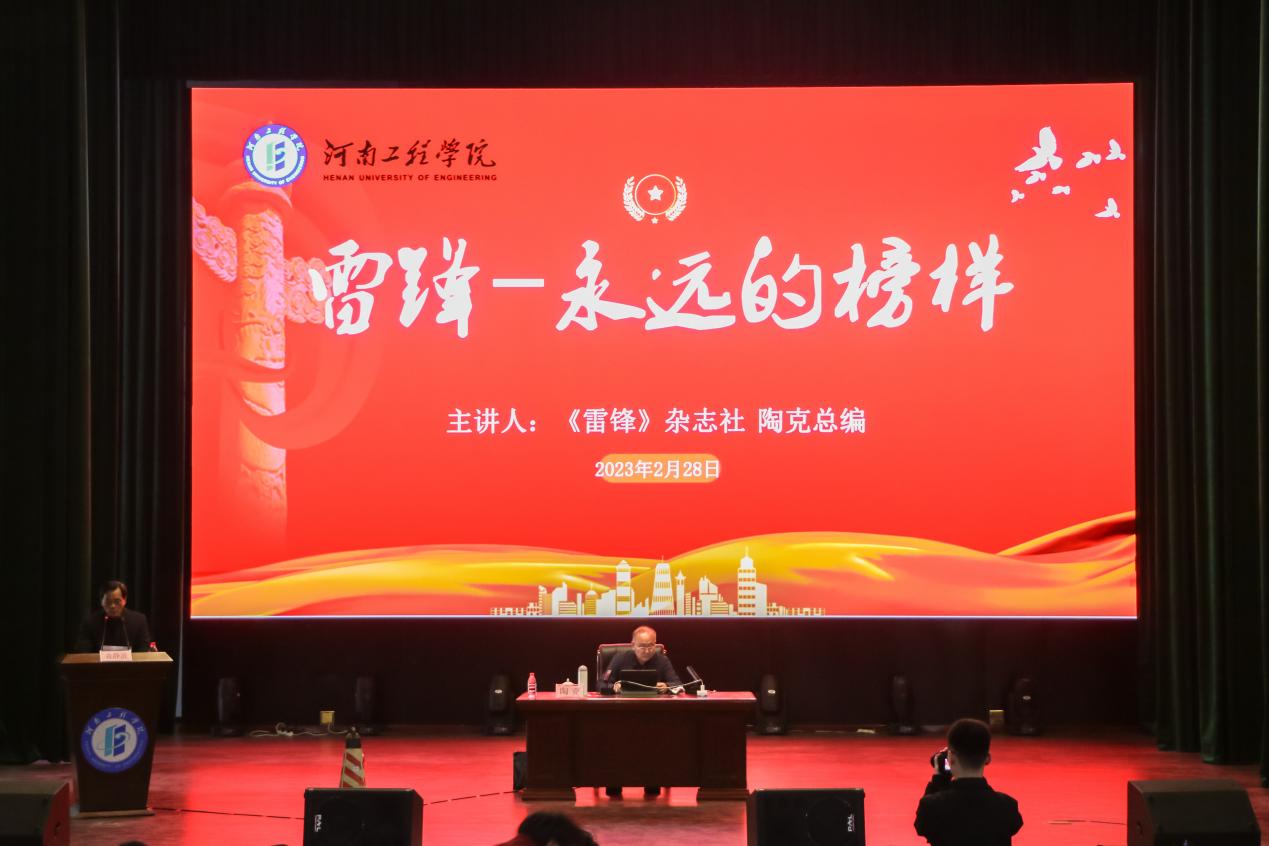 袁静波主持会议时指出,陶克将军的报告,是一场视野宏阔、内涵丰富的高质量思想政治报告。陶克将军以“雷锋-永远的榜样”为主题,用丰富的图片、平实的语言和深切的情感将雷锋同志在苦难童年和军旅生涯中的思想进步、业务提高、模范事迹等多个侧面勾画得轮廓清晰、栩栩如生,为同学们了解榜样、学习模范明确了目标、指明了方向。接下来,学校会加强青年学生教育、以雷锋同志为榜样,提升志愿服务质量,持续深化与《雷锋》杂志社在红色基因传承、校园文化宣传等方面的交流合作,真正把雷锋精神融入到开云kaiyun官方网站的发展中来,为学校推进实施“十四五”规划、加快硕士授权单位建设、提升应用型本科办学水平贡献力量。