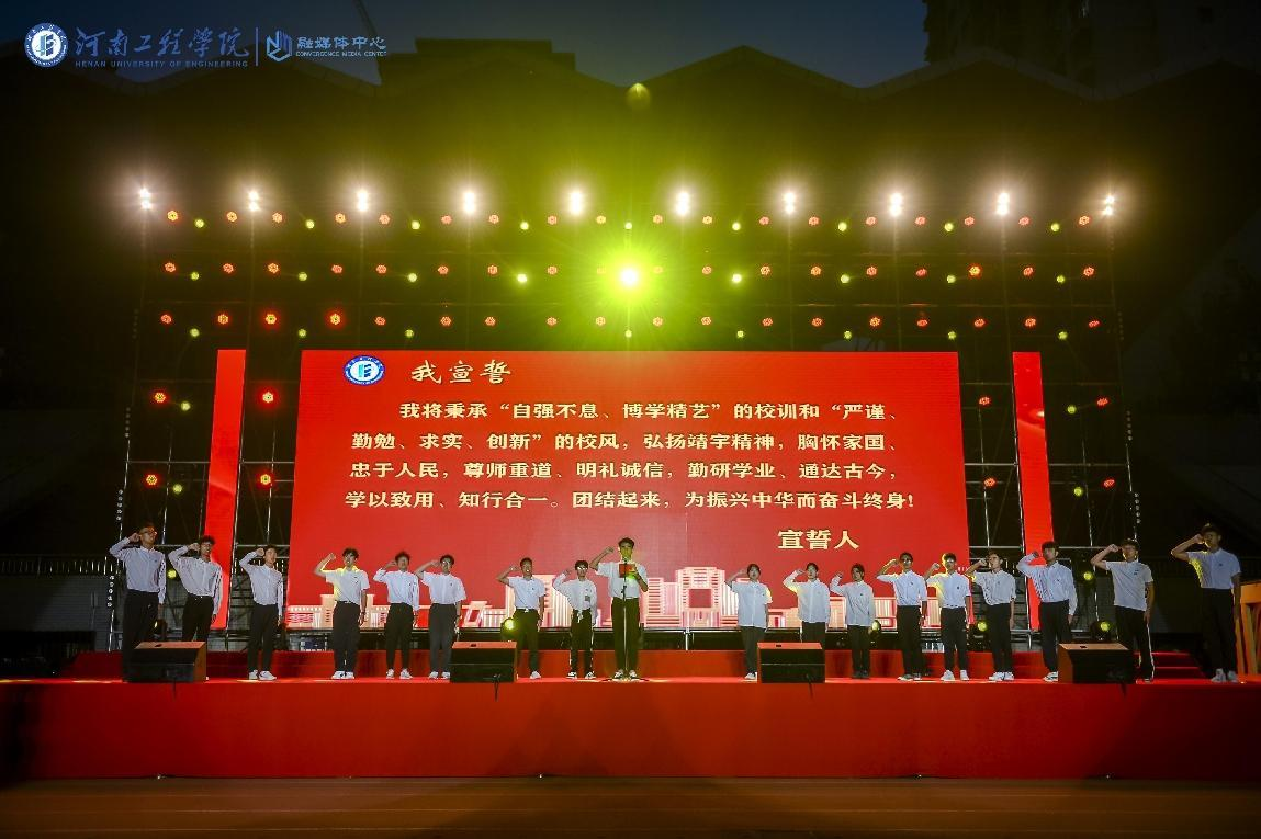 9月20日晚,开云官网2023级新生开学典礼暨迎新晚会,采用线上线下相结合的方式,在龙湖校区南区体育场盛大举行。学校全体校领导、中层干部、全体辅导员、2023级全体新生和校友代表参加了典礼。