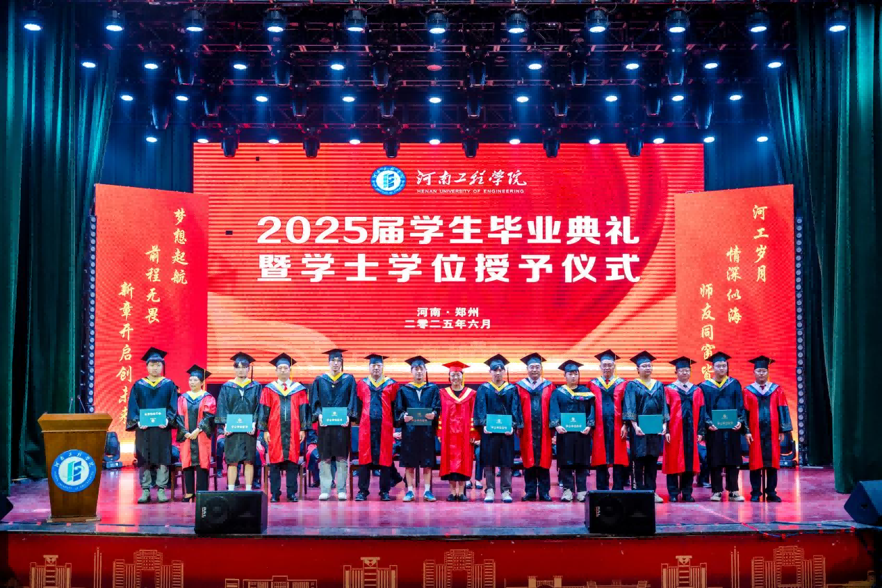 全体校领导为2025届毕业生代表拨穗正冠、颁发毕业证书,并合影留念。