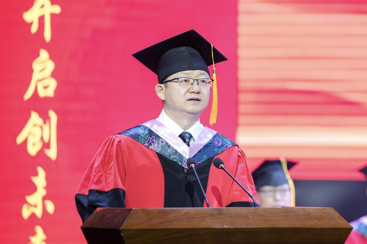 副校长李威宣读了《关于准予2025届毕业生毕业的决定》《关于授予2025届本科毕业生学士学位的决定》《关于表彰2025届优秀应届毕业生的决定》和《关于聘任2025届校友工作联络员的决定》。
