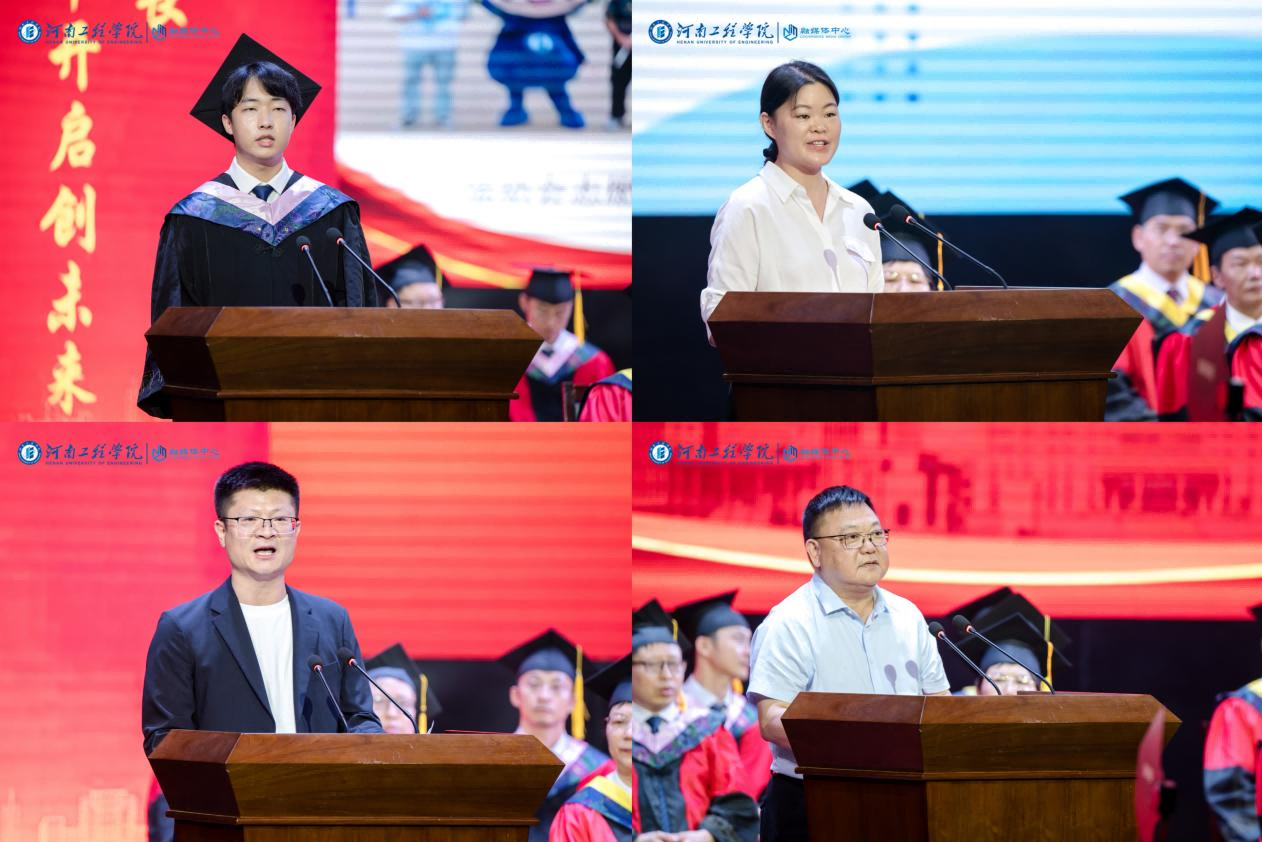 学生代表张权、教师代表徐文青、校友代表堵仁展、家长代表王颢分别发言,表达了对学校的衷心感谢和对毕业生的美好祝愿。