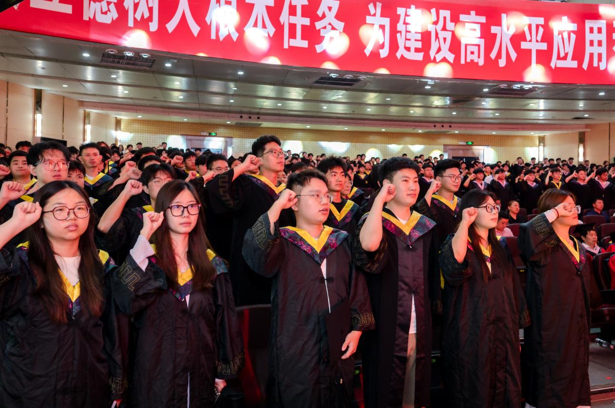 在毕业宣誓环节,2025届全体毕业生用高亢嘹亮的声音立下铮铮誓言,展现了新时代青年不负韶华、不负时代、不负人民的责任担当。