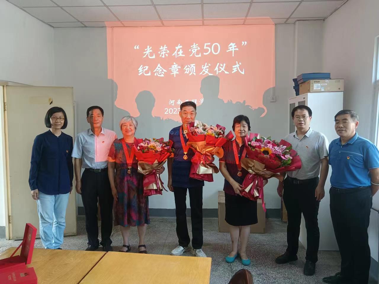 为喜迎建党101周年和党的二十大胜利召开,增强全校老党员的荣誉感与归属感,激发全体党员筑梦新征程的责任意识与担当精神,6月28日,开云官网在桐柏路校区离退休工作处会议室举行“光荣在党50年”纪念章颁发仪式。校党委副书记袁静波出席仪式,组织部、离退休负责同志和在党50年老党员参加仪式。活动仪式由离退休工作处党总支书记刘妍彬主持。