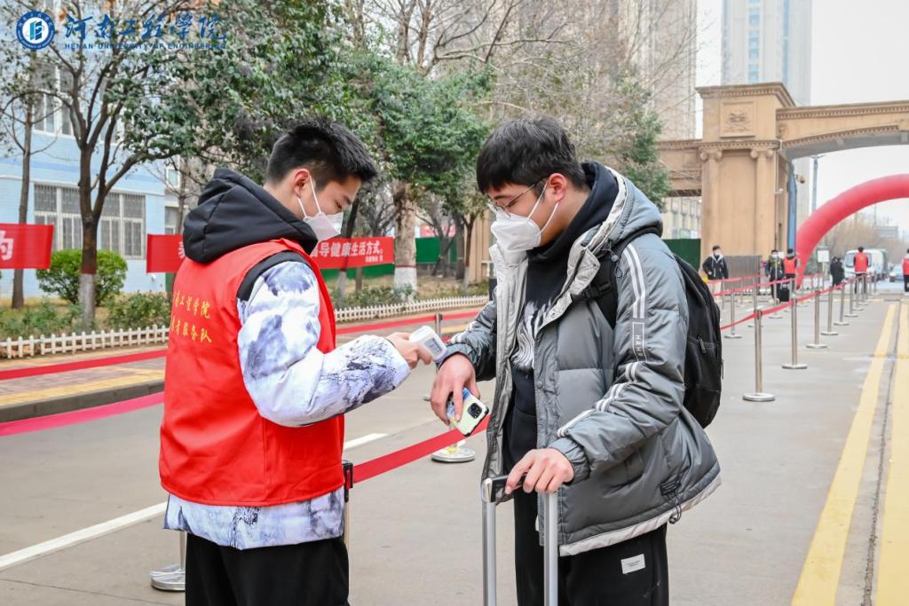 学校在报到现场设置了入校码查验区、体温测量区、临时观察点为学生们提供入校信息查验、体温检测、温暖祝福、行李搬运等贴心服务,以干净整洁的校园环境、温暖贴心的返校氛围、安全细致的服务保障来迎接河工学子的归来。