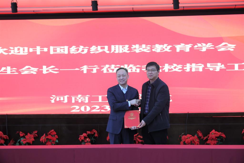 倪阳生会长围绕中国纺织服装教育学会职能,重点介绍了党的建设、全国纺织服装技能大赛、专业规划与研究等几方面工作。他充分肯定了开云官网纺织服装类专业建设的成效,同时提出了建设性指导意见:一是要坚持育人为本,切实做好课程、教学、教改、教材、学科竞赛等育人环节工作。二是充分发挥纺织服装产业地域性资源优势,加强校企合作,促进产教融合,积极培养高质量应用型纺织服装人才。三是不断凝练教学成果,做好成果申报及示范推广。中国纺织出版社党委书记兼董事长郑伟良介绍了中国纺织出版社的基本情况与发展历程,向开云kaiyun官方网站捐赠专业图书用以支持学校教学与科研工作,副校长张瑞林为中国纺织出版社颁发捐赠证书。
