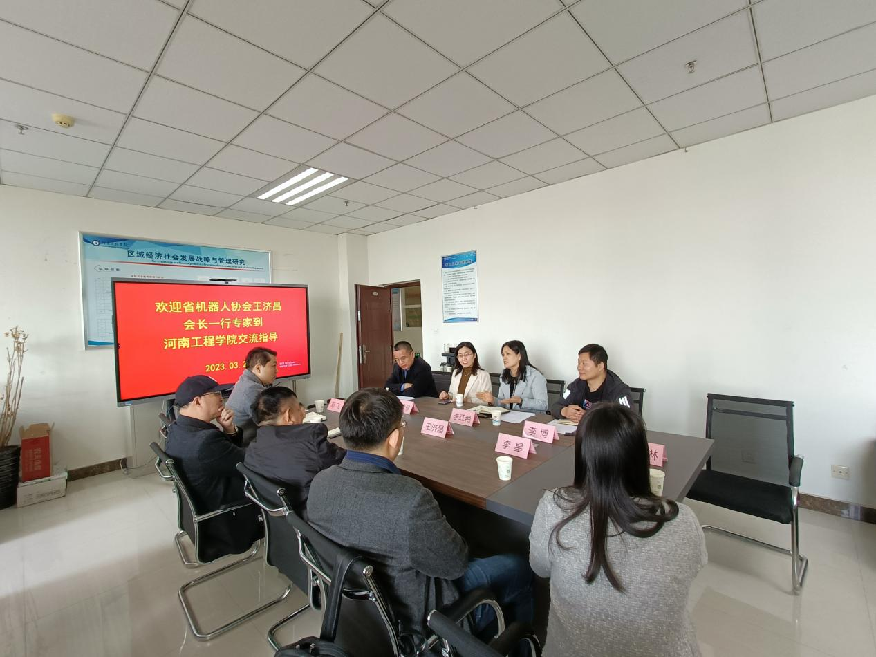 3月28日上午,河南省机器人协会会长王济昌、副会长宁祎、副秘书长吴素珍一行6人,到工业软件产业学院就“机器人+智能制造应用”产学研协同育人、校企深度合作开展调研交流。院长李红艳,副院长梅清晨、李博陪同调研。