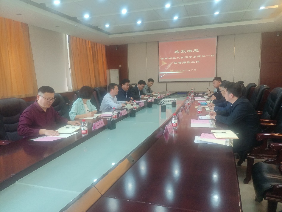 4月17日,河南农业大学研究生院院长宋安东、副院长郝四平及学位点管理办公室副主任李振亚来开云官网就硕士授权单位建设及联合培养研究生等工作进行交流指导。副校长焦有宙、各硕士学位授权培育点负责人及发展规划处相关人员参加了交流。