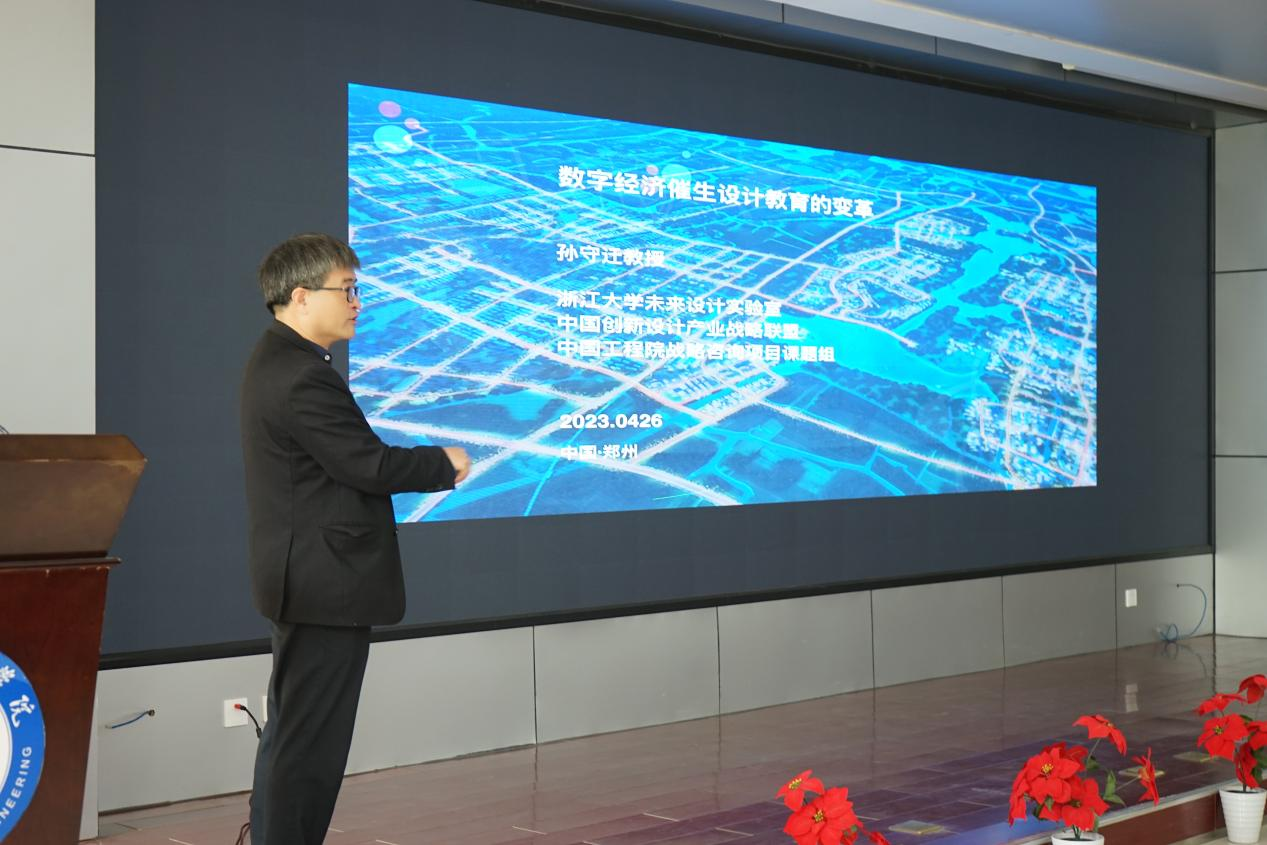 浙江大学未来设计实验室主任、中国创新设计产业战略联盟副理事长兼秘书长孙守迁教授以“数字经济催生设计教育的变革”为题分别论述了创新设计的新动能、新场景和新路径。指出设计由传统的三大构成延伸为现今的五大构成:技术构成、商业构成、文化构成、人本构成、艺术构成。创新设计可应用于智能设计、数字平台、人机融合、绿色设计等场景,将会形成科学技术、文化艺术与产业模式相结合的发展路径。
