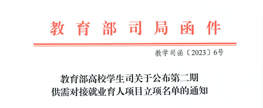 近日,教育部高校学生司公布了第二期供需对接就业育人项目立项名单。根据《教育部高校学生司关于公布第二期供需对接就业育人项目立项名单的通知》(教学司函〔2023〕6号),开云官网李立琳、王振领、马海舒、李小林、吴素珍、程光、何栎、文小爽、吴昊、李红艳、高詹、黄德金申报的14个项目获批立项。