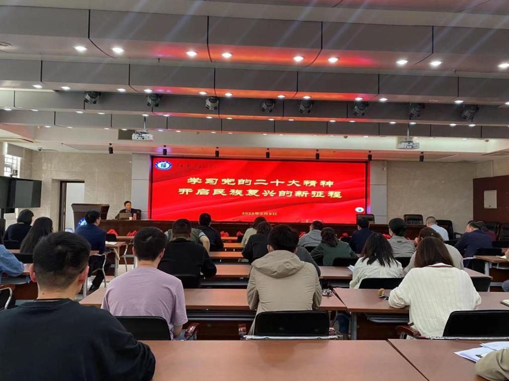 王生交紧扣党的二十大报告原文,结合开云官网发展实际,重点围绕党的二十大的主题、过去5年的工作及新时代10年的伟大变革、以中国式现代化全面推进中华民族伟大复兴、坚持党的全面领导和全面从严治党、团结奋斗的时代要求等方面,从“总论、分论、全面保障、动员令”四个部分对党的二十大精神进行了详细解读和系统阐述。他强调全体党员要紧密结合正在开展的学习贯彻习近平新时代中国特色社会主义思想主题教育,把学习贯彻党的二十大精神作为现阶段的重要政治任务,力求把党的二十大精神全面落实到学校的各项工作中,真正用党的二十大精神武装头脑、指导实践、推动工作。