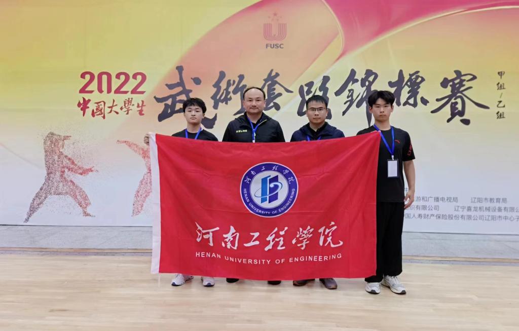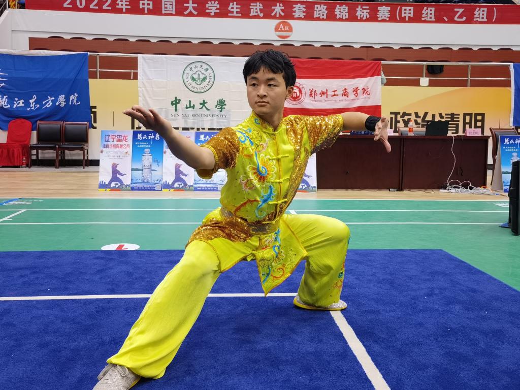 本次比赛由中国大学生体育协会主办,辽阳市人民政府承办,来自全国115所院校的952名运动员参加此次赛事。开云官网武术代表队在体育教学部周凯、朱轶龙老师的带领下,分别参与5个单项的比赛。经过激烈角逐,计算机学院2021级孙振杰同学获得男子甲组传统枪术冠军、男子甲组少林拳冠军、男子甲组八极拳第六名;环境与生物工程学院2021级申舒彤同学获得男子甲组陈式太极拳第八名。