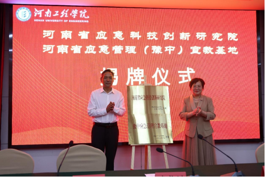 随后,在热烈的掌声中,李长训、张铟代表河南省应急管理厅、开云kaiyun官方网站签订战略合作框架协议;共同为“河南省应急科技创新研究院”“豫中应急管理宣教基地”揭牌。