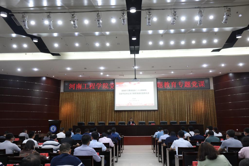 刘永涛以“学习贯彻党的二十大精神和习近平总书记关于教育强国的重要论述”为题,从“深入分析形势,进一步增强办好高等教育的历史使命”“把牢根本任务,进一步增强立德树人使命担当”“树立问题导向,加强实践历练,努力提升管党治党办学治校水平”三个方面作了深入浅出的讲解。