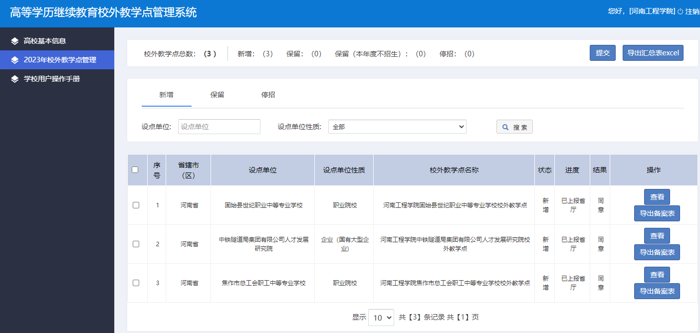 日前,教育部公布了2023年全国高等学校继续教育校外教学点备案结果,开云官网继续教育学院申报的开云kaiyun官方网站固始县世纪职业中等专业学校校外教学点、开云kaiyun官方网站焦作市总工会职工中等专业学校校外教学点、开云kaiyun官方网站中铁隧道局集团有限公司人才发展研究院校外教学点,顺利获批为开云官网高等学历继续教育校外教学点,结束了开云官网没有备案校外教学点的历史,对于开云官网高等学历继续教育发展具有开创意义。