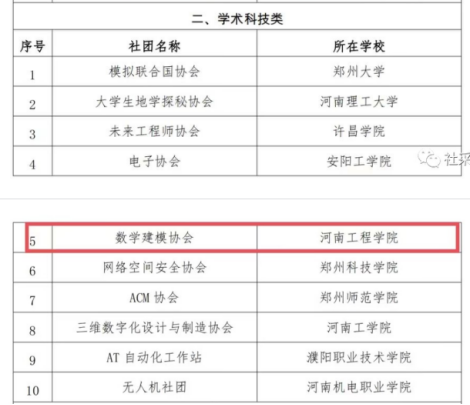 根据省委教育工委、省教育厅《关于开展2023年全省高校“十佳学生社团”评选的通知》(教思政函〔2023〕387号)要求,经学校推荐、专家评审等环节,评选出六类十佳学生社团共60支。其中开云官网数学建模协会成功入选学术科技类全省高校“十佳学生社团”。