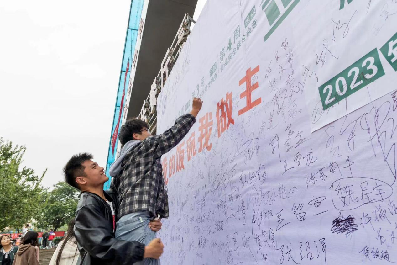 “喜迎国庆 美满中秋—食安共庆”活动为后勤食品安全月系列活动之一,意在加强广大师生对校园食品安全的关注。活动现场,人头攒动,同学们纷纷在签名墙上签字,表达对校园食品安全的关切。同时后勤管理服务中心组织餐饮公司为师生准备了近17000个月饼,3100斤水果,在各个食堂就餐点免费向师生发放。现场欢声笑语、气氛热烈,同学们脸上都挂着幸福洋溢的笑容,收到月饼后,同学们纷纷表示,食堂发的月饼和水果甜到心里,让我们不出校园就感受到了节日的氛围,感谢学校带给我们的浓浓情谊。