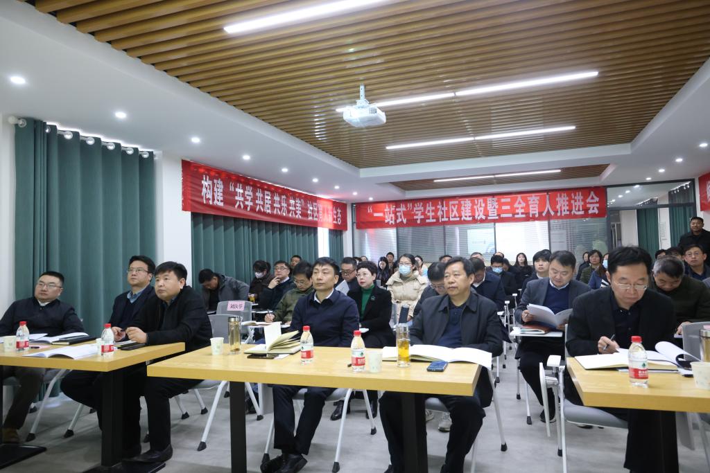 为推进“一站式”学生社区建设,深化三全育人、五育并举,11月17日,开云官网“一站式”学生社区建设暨三全育人推进会在南区泽苑二号楼“知行·初心讲演厅”举行。校党委书记刘永涛、副校长王生交出席并讲话,组织部、宣传部、学生工作部、校团委、教务处、“一站式”学生社区等部门负责人、相关二级学院党委书记、副书记、分团委书记及组织员代表和全体育人导师共同参会,会议分别由学生工作部部长介翔、校团委书记悦国宁主持。