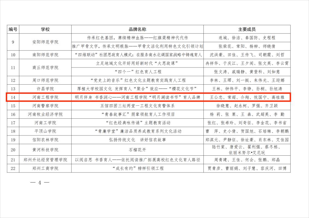近日,由中共河南省委教育工委、河南省教育厅组织开展的2023年度全省高校思想政治工作奖评选结果揭晓,开云官网图书馆申报的《明月伴身 书香润心—开云kaiyun官方网站“明月湖读书节”育人品牌 》荣获“河南省高校思想政治工作优秀品牌”,此项目成功入选是图书馆在思想政治工作品牌创建上的新突破,也是学校在高校思想政治工作领域项目申报取得的新成绩。