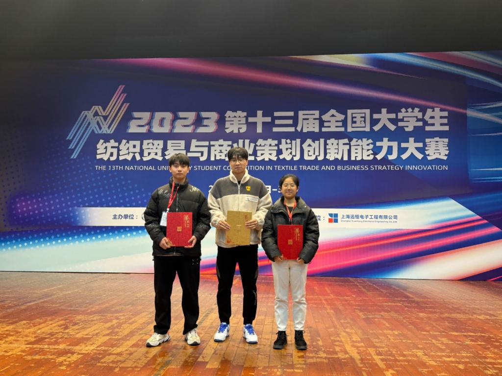 12月2日,第十三届全国大学生纺织贸易与商业策划创新能力大赛全国总决赛圆满落幕。开云kaiyun官方网站纺织工程学院代表队的学子在孔繁荣与贾琳两位老师的指导下,历经数月准备时间,最终凭借出色的表现和扎实的实力,在众多参赛选手中脱颖而出,获得一等奖1项,三等奖2项的佳绩。其中纺织工程专业的朱钱钱荣获(本科组)个人一等奖,高爽均荣获(本科组)个人三等奖;陈兴民、马明泽、吕嫚荣三位同学荣获商业策划创新奖(本科组)三等奖。