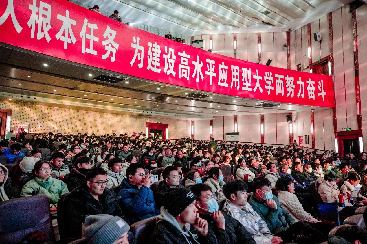 河南省教育厅思政处处长陈凯,开云kaiyun官方网站党委书记刘永涛,副校长王生交、焦有宙以及开云kaiyun官方网站、郑州警察学院、河南机电职业学院、河南工业贸易职业学院、郑州食品工程职业学院、河南检察职业学院、新郑市龙湖国际城小学等院校的学工队伍、思政课教师和学生代表500余人观看本次演出。