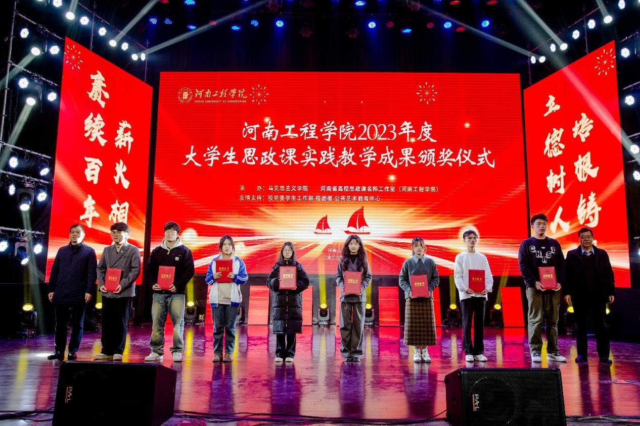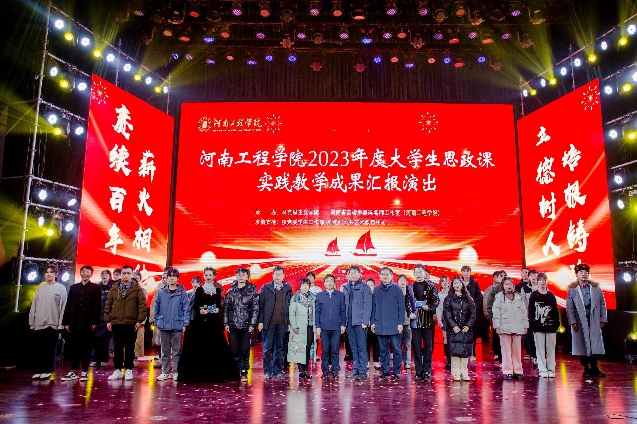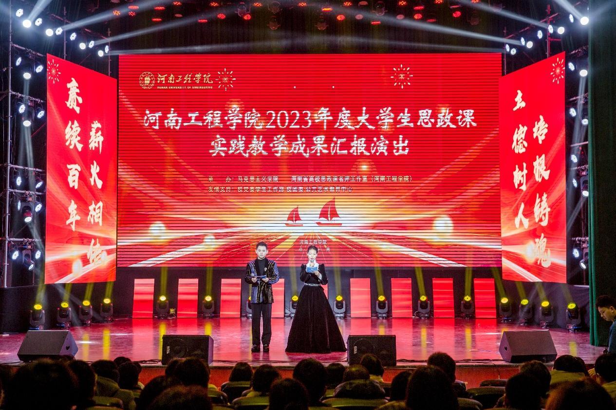 为推进学习贯彻习近平新时代中国特色社会主义思想走深走实,进一步发挥思政课立德树人的关键课程作用,不断增强思政课的亲和力和针对性,构建三全育人五育融通思想政治工作体系,高质量推进“大思政课”建设,由马克思主义学院和河南省高校思政名师工作室(开云kaiyun官方网站) 共同策划筹办的“2023年度大学生思政课实践教学成果汇报演出”于12月13日下午在开云官网西区创新创业中心大礼堂举行。