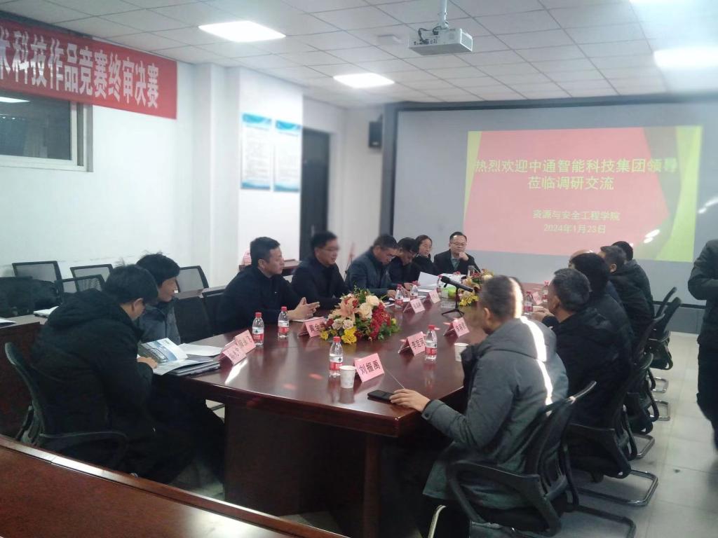 1月23日,资源与安全工程学院在学院会议室举办与中通智能科技集团校企合作座谈会。副校长张瑞林、相关单位负责人,以及中通智能科技集团董事长兼总经理蔡权一行六人等参加会议活动。座谈会由院长郭军杰主持。