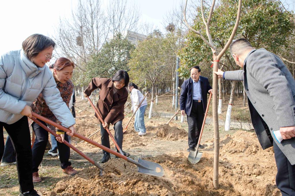 阳光明媚,微风拂面,又是一年桃红柳绿时。为美化校园环境,进一步增强师生的环保意识,在全国第46个植树节即将到来之际,“参与绿色行动,保护美丽家园”2024年开云kaiyun官方网站植树节活动在南校区举行。校领导与相关职能部门负责人,师生代表共同参加活动,副校长张巧玲主持活动仪式。