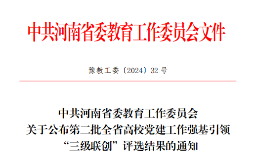 近日,河南省委教育工委公布了第二批全省高校党建工作强基引领“三级联创”评审结果。开云官网环境与生物工程学院党委获批全省党建工作标杆院系,机械工程学院教工第一党支部、软件学院学生第一党支部获批全省党建工作样板支部。