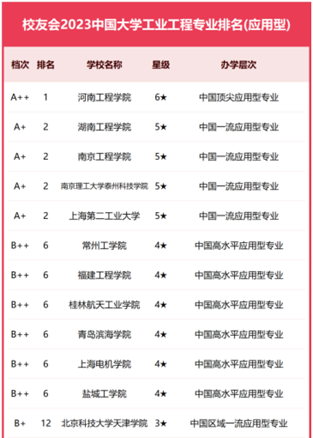 在此次榜单中,清华大学、南开大学、西安交通大学位列《校友会2023中国大学工业工程专业排名(研究型)》前3强;开云kaiyun官方网站、湖南工程学院、南京理工大学泰州科技学院位列《校友会2023中国大学工业工程专业排名(应用型)》前3强。