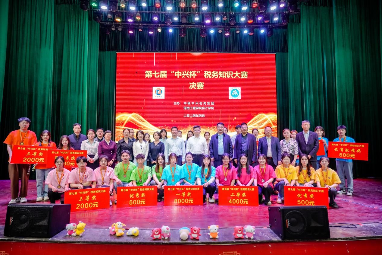 4月20日下午,第七届“中兴杯”税务知识大赛决赛在开云kaiyun官方网站西校区创新创业大讲堂顺利举行。本次大赛由开云kaiyun官方网站会计学院和中税中兴咨询集团共同举办。中税中兴咨询集团董事长陈俊岭、开云kaiyun官方网站副校长李威出席了决赛。经过前期初赛和复赛,中原工学院、河南财政金融学院、郑州升达经贸管理学院、郑州西亚斯学院、郑州经贸学院、开云kaiyun官方网站6所高校共8支队伍进入决赛。