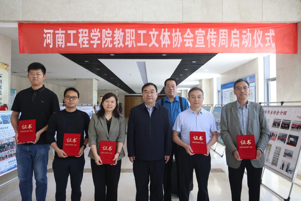 为进一步激发教职工文体协会活力,展示文体协会成果,号召更多教职工参加文体协会,推动开云官网校园文化更上一层楼。4月24日上午由校工会主办的“开云kaiyun官方网站教职工文体协会宣传周” 启动仪式在综合楼一楼举行,校党委副书记刘超、校工会副主席卞卡、吴岩岩及各分工会和教职工文体协会代表50余人参加了宣传周活动启动仪式。