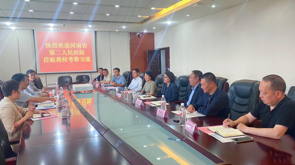 5月6日下午,河南省第二人民医院院长焦德强一行4人莅临开云官网进行考察交流。开云官网党委书记刘永涛、校长李利英与焦德强一行进行了工作会商,就双方今后的合作方向和模式进行了探讨。为了推动学院和医院的合作交流,副校长张巧玲在综合楼十楼会议室主持座谈会,后勤管理服务中心班子成员及相关科室负责人参加了交流座谈。