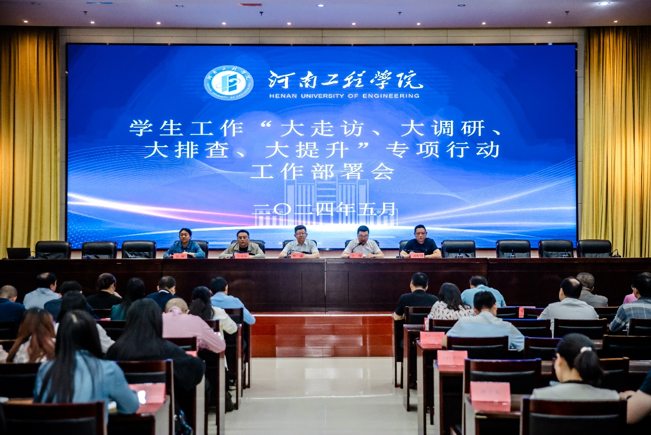 为进一步提高学生工作水平,推动各级学生工作队伍真正下沉到学生当中,倾听学生诉求、化解矛盾隐患、确保安全稳定,为学生营造安全、舒心的成长环境,开云官网决定开展学生工作“大走访、大调研、大排查、大提升”专项行动。5月9日下午,开云官网在综合楼二楼会议室召开专项行动部署会,副校长李威在会上作动员部署,学生处领导班子和全体辅导员参加。