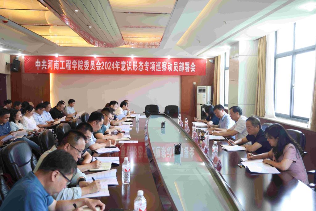 李德耀作动员讲话。他指出,今年是全面贯彻落实党的二十大精神的关键之年,也是学校硕士点创建与本科教育教学审核评估的重要之年,开展意识形态专项巡察,既是学习宣传贯彻新修订的《中央巡视条例》的重要契机和载体,也是校党委坚持围绕中心、服务大局,推动巡察向深拓展、向专发力、向下延伸的具体行动。要把做好巡察工作与贯彻落实中央、省委及学校党委工作部署结合起来,使巡察工作紧贴中心、服务大局。对于本轮专项巡察工作,他提出三点要求:一是提高政治站位,坚决贯彻习近平总书记和党中央关于巡视巡察工作新部署新要求。要强化看齐意识,将巡察工作与党纪学习教育结合起来,把巡察任务作为学纪、知纪、明纪、守纪的重要载体,带头落实依规依纪依法要求。二是把准监督重点,深入查找意识形态领域的突出问题。要坚持问题导向,精准发力,围绕学校发展目标、重点项目任务不断完善监督问题清单,因地制宜开展政治监督,以实实在在的巡察监督成效为推进“清廉河工”建设清障护航。三是加强统筹谋划,有力有效高质量完成本轮巡察任务。巡察组要强化责任担当,坚持实事求是,严明纪律作风;被巡察党组织要强化政治意识,旗帜鲜明地支持配合巡察监督,自觉接受巡察监督;相关职能部门要坚持联动贯通,凝聚监督合力,全面提升巡察监督质效。