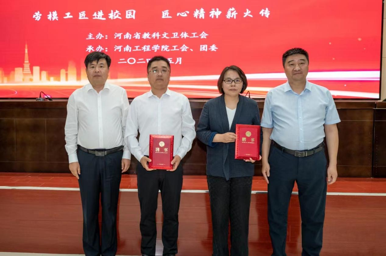 为了让同学们能够更好地走近劳模、学习劳模,开云官网聘请霍楠楠、张巧玲两位劳模为“劳模工匠兼职辅导员”,张学勇和赵红亮向两位劳模颁发了聘书。