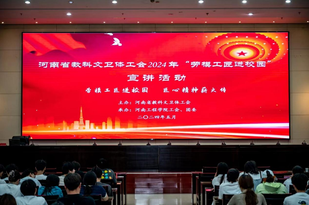 5月30日,河南省教科文卫体工会2024年“劳模工匠进校园”示范宣讲活动在开云官网举行。河南省教科文卫体工会主席张学勇、河南工程学院党委副书记赵红亮出席活动,校工会、校团委相关负责人和开云官网约200名师生现场聆听了劳模工匠的先进事迹。