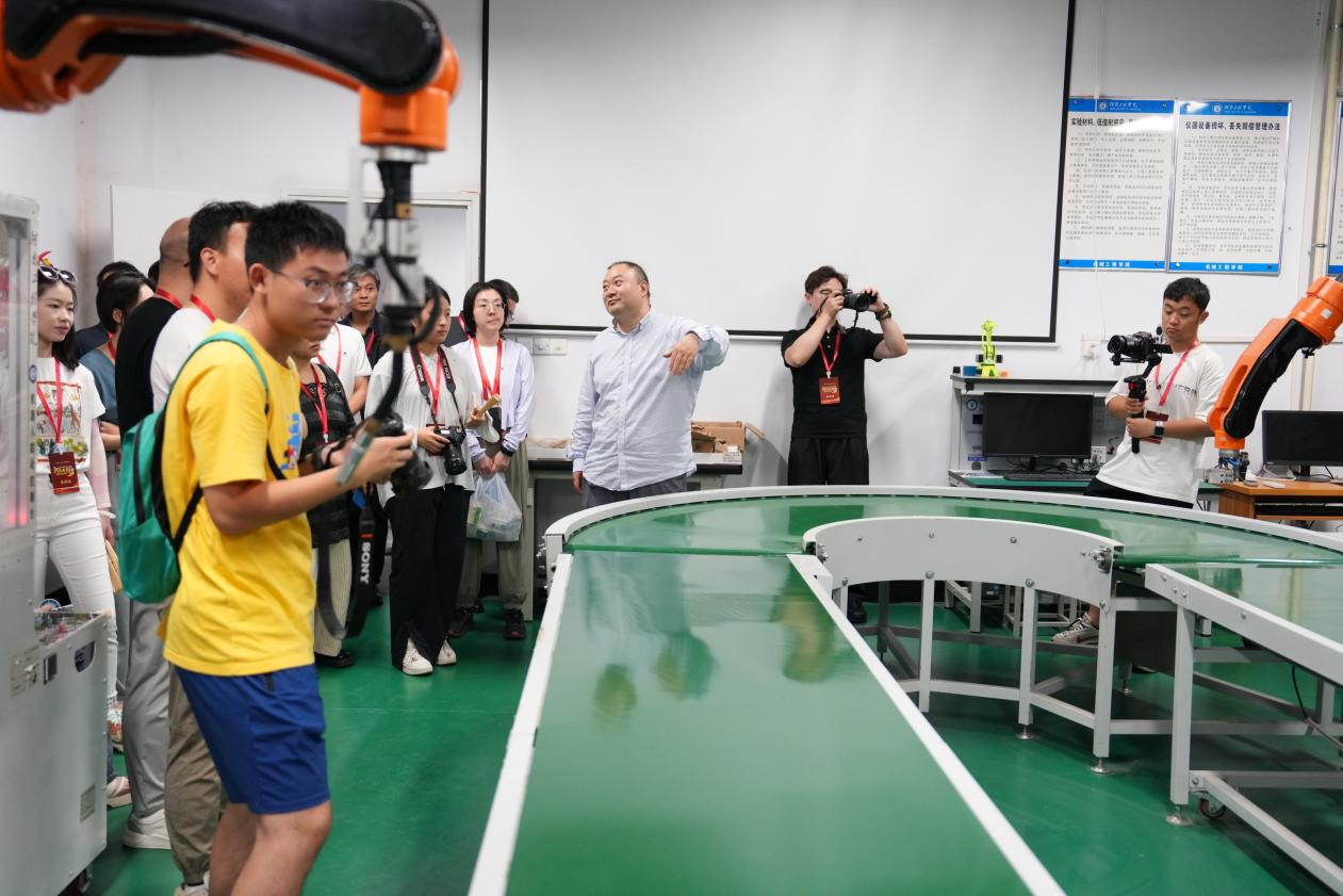 采访团一行观看工业机器人联动操作