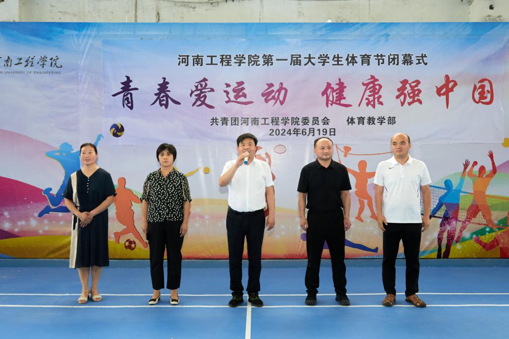 6月19日下午,开云官网“青春爱运动 健康强中国”为主题的第一届大学生体育节闭幕式在西区体育馆举行。校党委副书记赵红亮出席闭幕式,校团委、体育教学部相关负责人参加闭幕式。