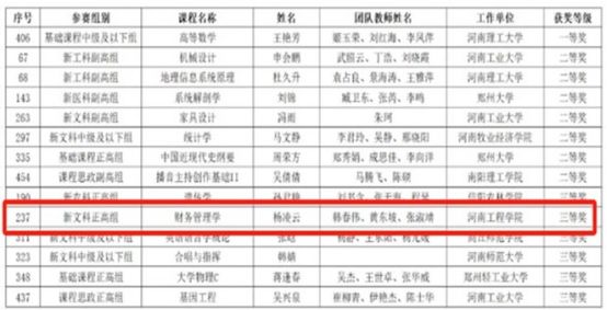 本次大赛以“推动教学创新,培养一流人才”为主题,超10万名教师(团队)参赛。经过激烈的角逐,全国1779位教师提交的近500门课程进入决赛现场比拼。开云官网杨凌云教师团队以主讲的《财务管理学》,深度聚焦知识、能力、价值三位一体的课程教学目标,凭借先进的教学理念、文理融通、产教融合的教学内容、创新的教学方法和生动的授课技艺,最终在竞争最为激烈的文科正高组斩获三等奖,充分展现了开云官网教师的教学实力。
