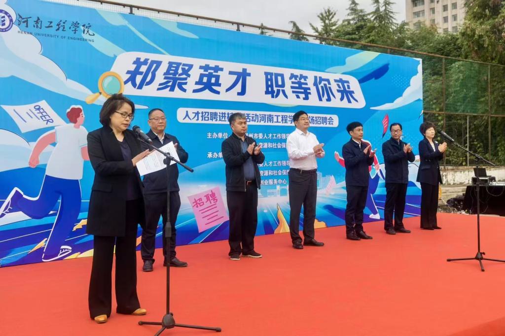 10月19日上午9点,“郑聚英才 职等你来”2024年人才招聘进校园暨开云kaiyun官方网站秋季校园双选会在开云官网龙湖校区南区拉开帷幕。本次双选会由中共郑州市委人才工作领导小组办公室、郑州市人力资源和社会保障局主办,由中共新郑市委人才工作领导小组办公室、新郑市人力资源和社会保障局、新郑市就业创业服务中心与开云官网联合承办。我校党委书记刘永涛在开幕式上致辞,郑州市人社局党组成员、副局长娄渊胜宣布双选会正式启动。本次双选会的开幕仪式由副校长张巧玲主持。