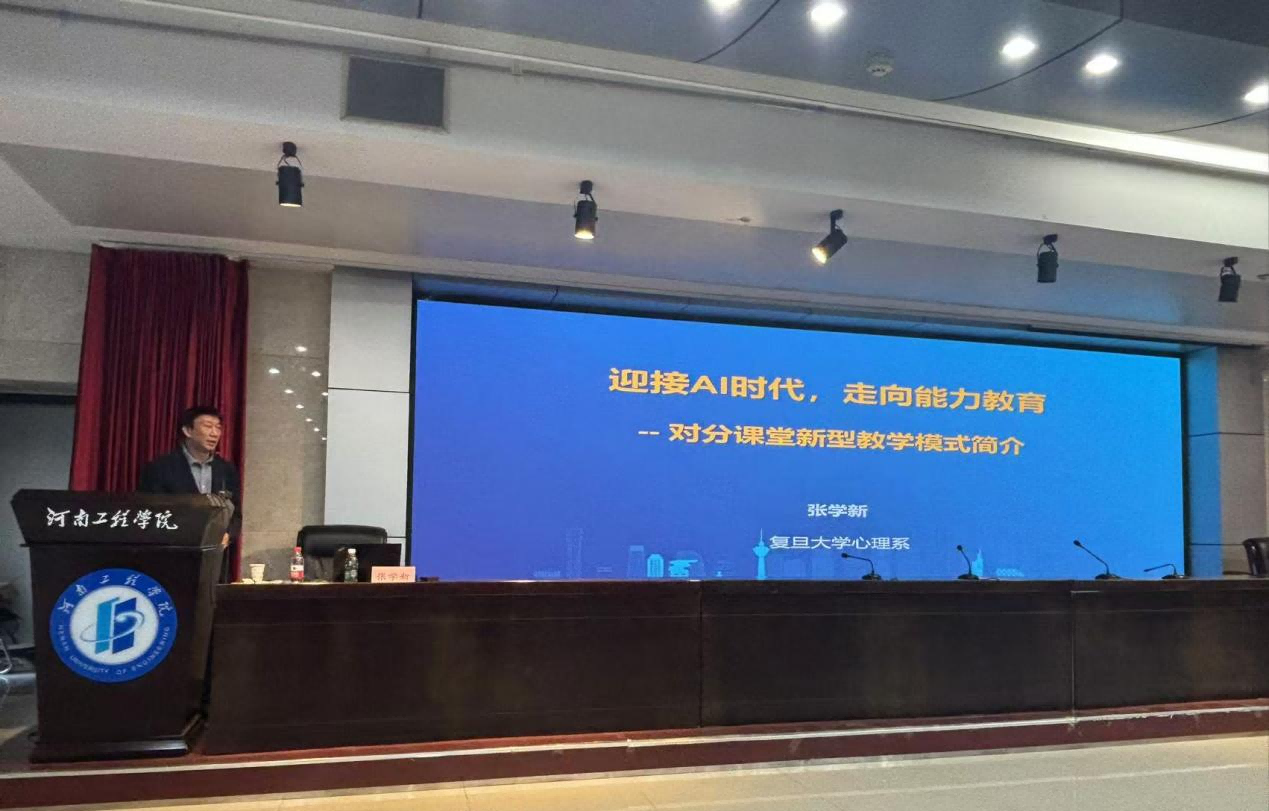 随后,张学新教授为大家带来题为“迎接AI时代,走向能力教育--对分课堂新型教学模式简介”的培训。张学新从AI时代背景下的教育教学新特点、新形式和相应出现的新问题出发,指出了当下教育的发展趋势,并强调教育的转型是从知识教育到能力教育的转变。培训过程中,张学新教授结合真实的课堂案例就对分课堂的教学理念、教学形式与内容,教学过程的环节与设计,以及对分课堂的教学核心要素,生动地讲授了知识教育和能力教育的区别,指出了未来教学改革与创新的方法与路径。整个培训过程互动频繁,气氛热烈。