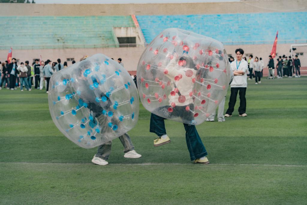 本次活动共设“旱地龙舟竞速”“众星捧月”“趣味碰碰球”“袋鼠运瓜”等6个项目。活动过程中,参赛学生团结协作、配合默契。在“旱地龙舟竞速”活动中,参赛学生动作整齐划一,喊着“左右!左右!……”的口号在旱地“划船”;在“众星捧月”活动中,参赛学生相互配合,在紧张而愉快的氛围中,控制球始终保持在手中的气垫上,完成规定动作任务。一个个项目有序开展,欢呼声、掌声将氛围推向高潮,学生在团体活动中体验信任、激发潜能、收获成长。
