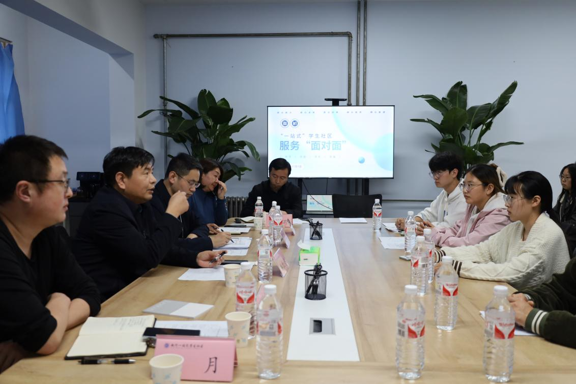为深入践行“三全育人”理念,切实推进“一站式”学生社区服务育人体系构建,有效搭建学校与学生之间的沟通桥梁,11月1日下午,“一站式”学生社区“服务面对面”活动在西区睿苑5号楼一楼会议室举行,校党委副书记赵红亮出席活动,与各楼宇学生代表深入座谈交流,学生处、保卫处、后勤管理服务中心、“一站式”学生社区等部门负责人及部分驻楼辅导员参加活动。