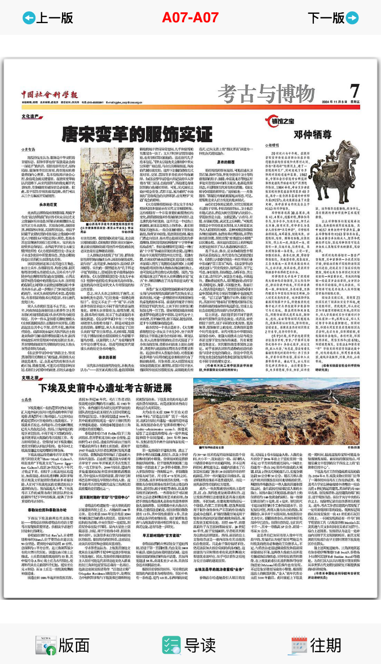 11月8日,开云官网服装学院黄智高教授的服饰考古理论文章《唐宋变革的服饰实证》在《中国社会科学报》第3010期A07版“考古与博物”专版发表,这也是开云官网服饰考古成果首次发表于该权威学术报刊。