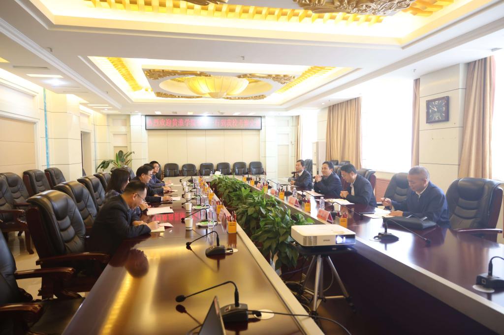 近日,黄淮学院党委副书记曹忠义等一行来校考察交流党建、学科专业建设等方面工作。校党委书记刘永涛会见了曹忠义一行,随后两校进行了座谈交流,座谈会由校党委副书记刘超主持。