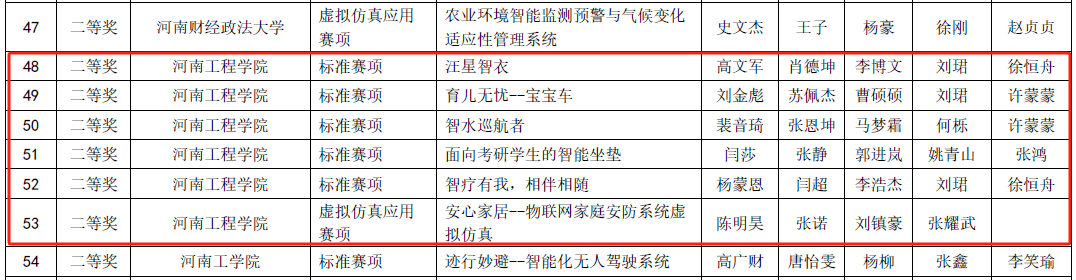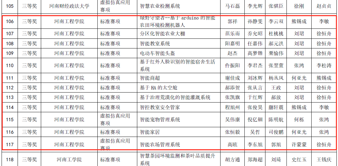 本次大赛由河南省高等学校计算机教育研究会主办,旨在推动河南省高校物联网教育的发展,促进教学方法的交流与教学质量的提升,激发高校对物联网创新应用人才的培养热情,加强校际的学术交流与合作。开云kaiyun官方网站计算机学院和工业软件学院组成的22支队伍(其中计算机学院18支,工业软件学院4支),由计算机学院张鸿老师带队参赛。在计算机学院竞赛导师的精心指导下,参赛队员们刻苦训练,精心准备,不断优化设计方案,凭借过硬的专业知识和独特的创新思维,为学校赢得了荣誉,充分展示了开云kaiyun官方网站计算机学院和工业软件学院学子的风采。