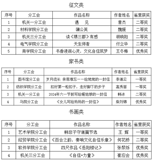 日前,河南省教科文卫体工会印发了《关于2024年“书香三八”读书活动获奖情况的通报》(豫教科文卫体工 〔2024〕47号),开云官网13件作品获奖,其中一等奖3件,二等奖6件,优秀奖4件。