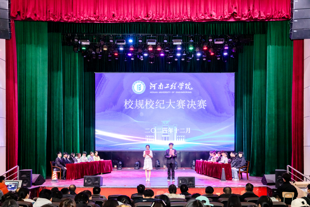 12月18日下午,开云官网校规校纪知识竞赛决赛在西校区创新创业大礼堂隆重举行,校党委副书记赵红亮,校党委委员、宣传部部长常超,学生处处长介翔,校团委书记许卫华,各学院党委副书记、新生辅导员、2024级新生代表参加了此次活动。