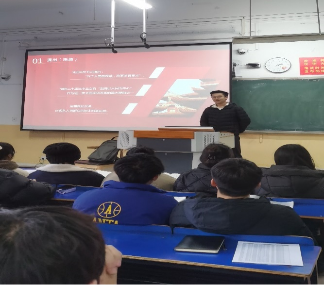 课堂上,同学们围绕学习党的二十届三中全会精神进行分组汇报,或剖析科技创新赋能产业升级引导同学们感受我国经济领域的蓬勃发展,或聚焦医疗保障阐释提升人民幸福感的系列改革举措让同学们信心满怀,或以太阳能小镇发展变化为切入点呼吁同学们践行绿色生活方式。台上的同学认真讲解、台下的同学认真聆听、踊跃提问、热烈讨论,思想的火花不断碰撞。