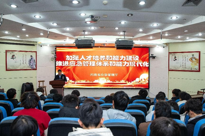 仪式结束后,与会嘉宾进行了深入的交流和讨论,并参观了资源与安全工程学院实验室和弘卫矿山微震监测中心。孙兆贤在图书馆一楼学术报告厅,以《加强人才培养和能力建设,推进应急管理体系和能力现代化》为题,为资源与安全工程学院师生作了一场生动的学术报告,受到了师生欢迎。